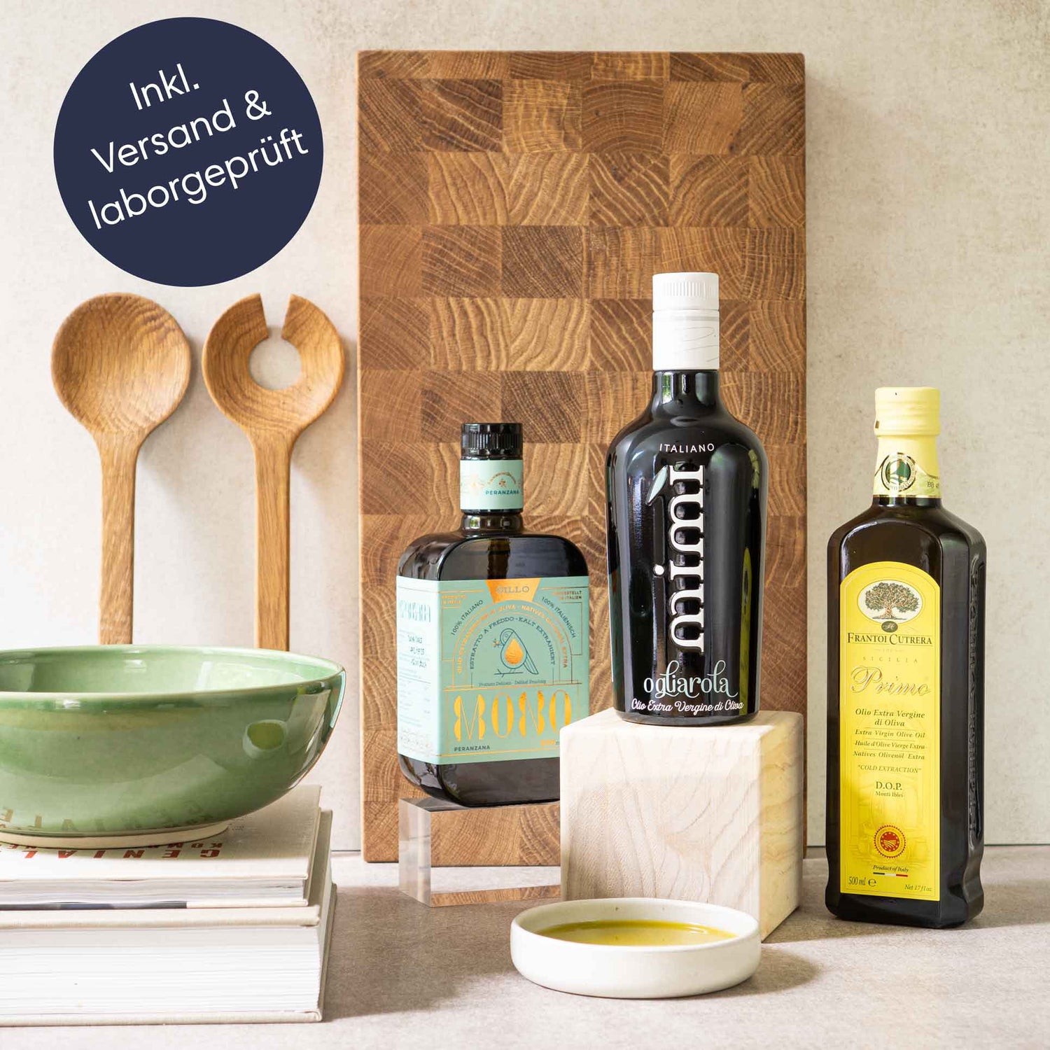 Dies ist Ihre Eintrittskarte in die wunderbare Welt des Olivenöls. Je nach gewähltem Zeitraum, erhalten Sie immer eine neue 500 ml Flasche natives Olivenöl extra von den weltbesten Ölmühlen. Die Auswahl wird von unserer Gründerin Andrea kuratiert, anschließend von uns laborgeprüft und dann direkt zu Ihnen nach Hause geliefert.