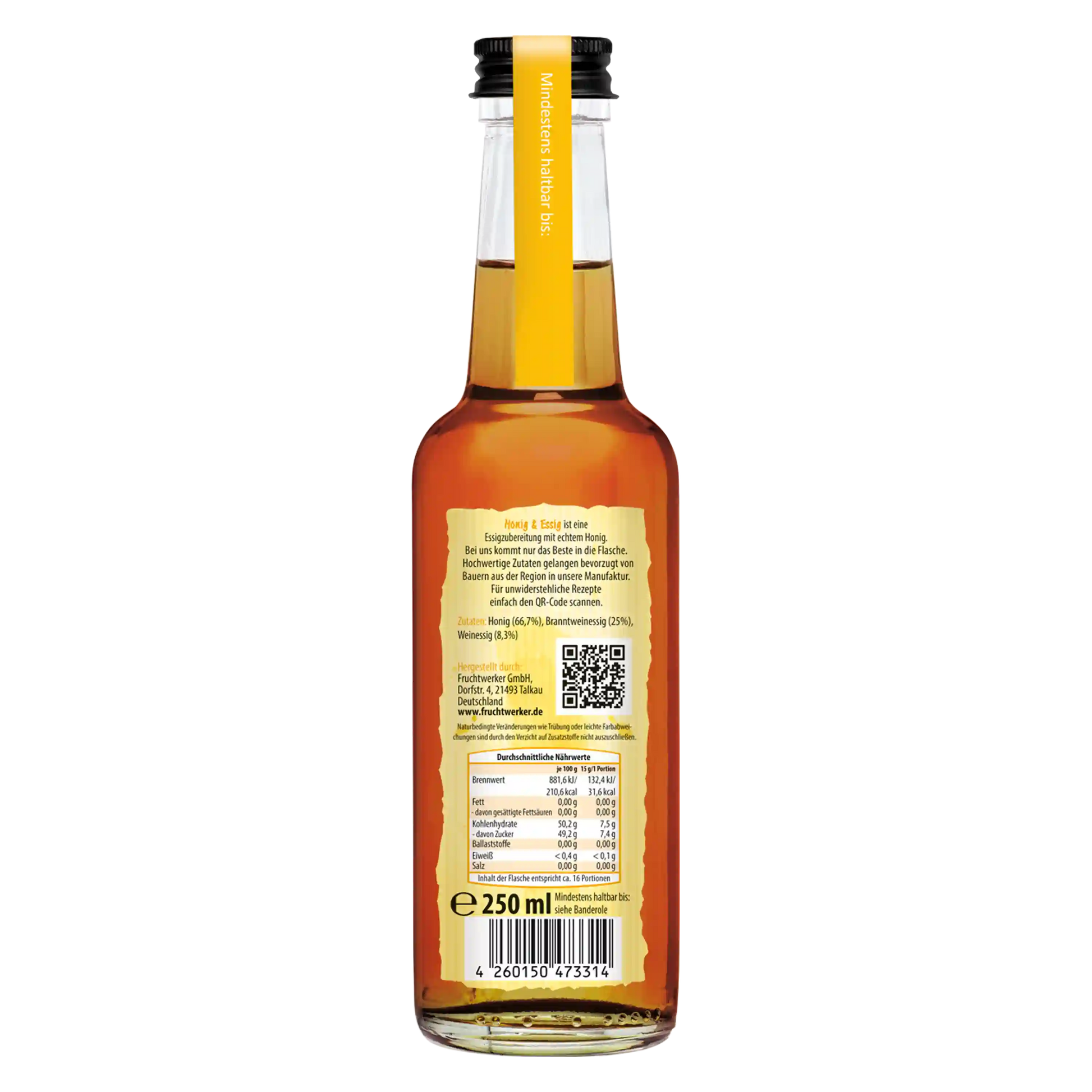 Honig (66%). Branntweinessig (25%), Weinessig (8,3%)